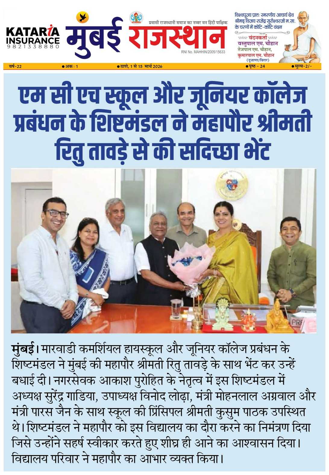 MCH School Mayor Ritu Tawde 2026